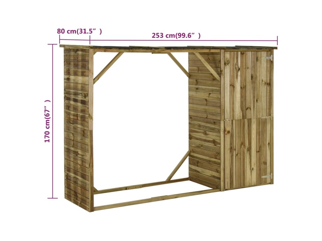 vidaXL Zahradní kůlna na dříví a nářadí borovice 253 x 80 x 170 cm