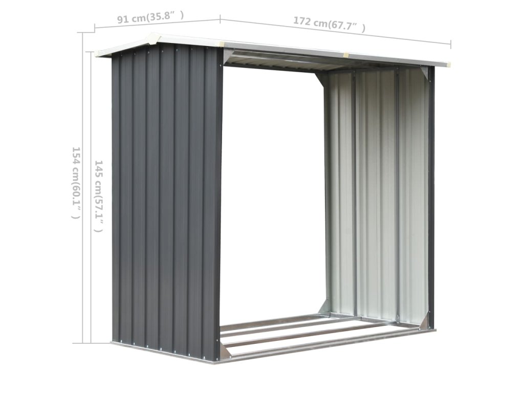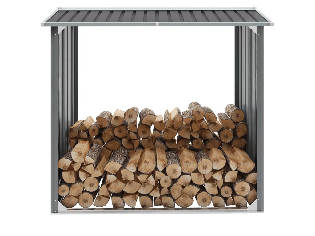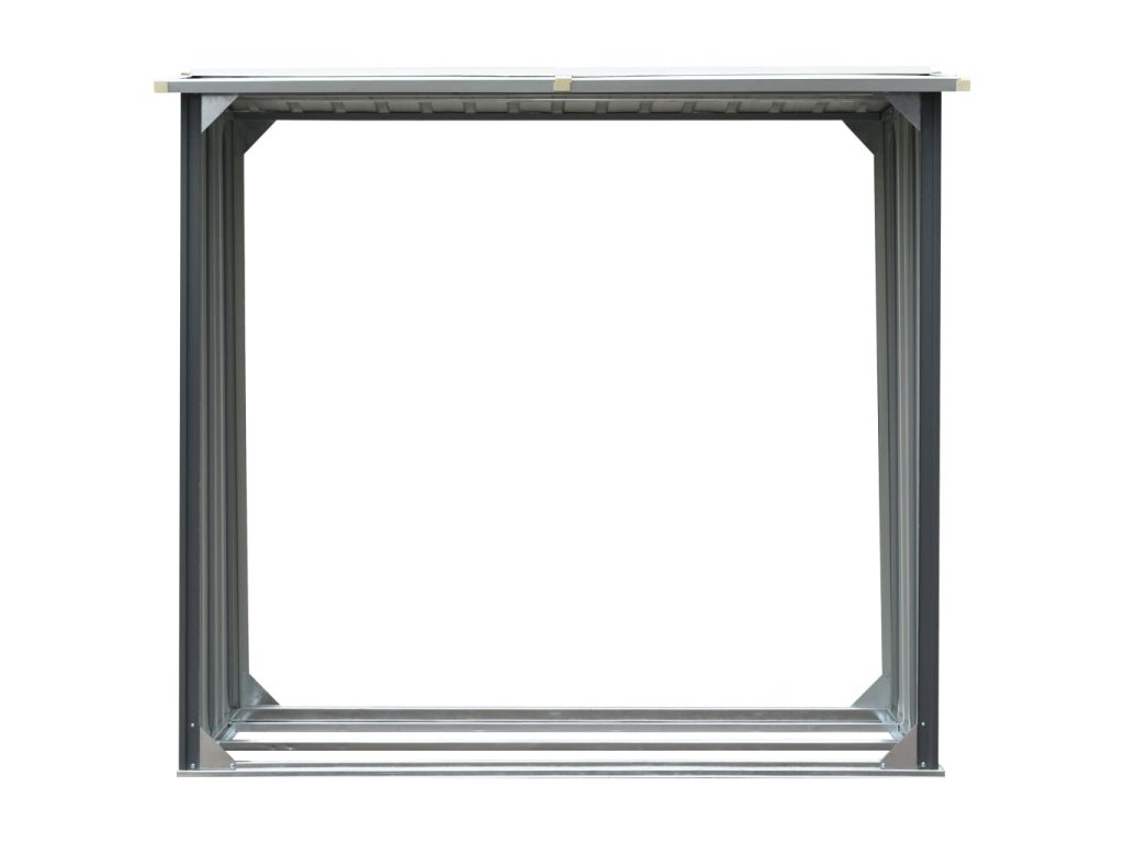 Má stabilní konstrukci s extra trubkami na obou stranách. Díky tomu, že je vyroben z pozinkované oceli, vyžaduje skladovací domek na dřevo minimální údržbu a je velmi odolný. Tento skladovací domek na dřevo má ocelový podlahový rám pro větší stabilitu a zvýšené podlahové latě, které udržují polena větraná a suchá. Dešťová voda bude díky šikmé konstrukci automaticky odváděna ze střechy. Náš skladovací domek na dřevo se snadno montuje.