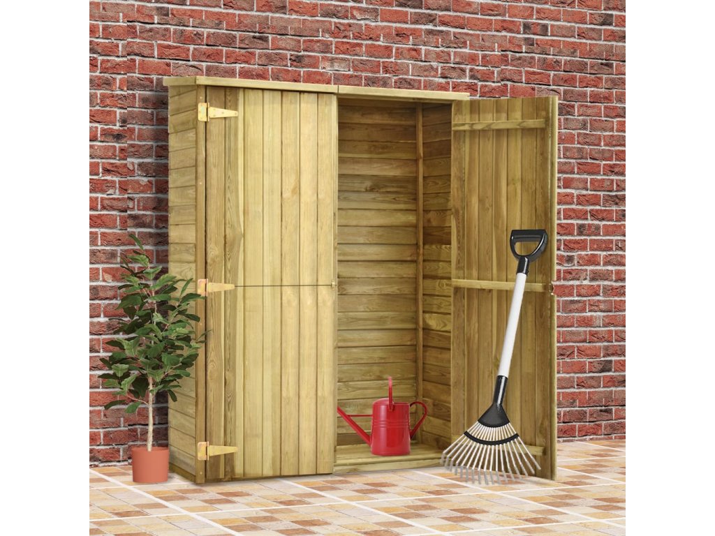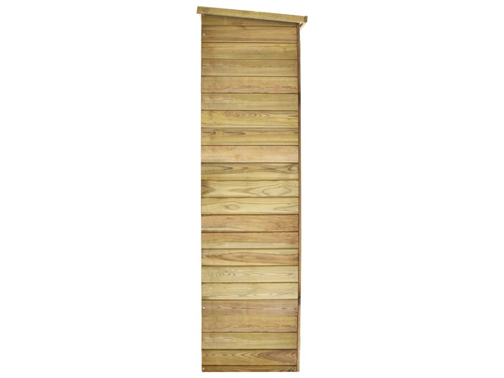 Tato kůlna, vybavená čtyřmi dobře řešenými policemi a velkým bočním prostorem, je dokonale navržená pro nejrůznější zahradní náčiní, vybavení pro péči o trávník, příslušenství k bazénu či nářadí s dlouhou rukojetí, jako jsou např. košťata, hrábě apod. Kůlna je vyrobená z kvalitního impregnovaného borového dřeva, které je zárukou mimořádné životnosti a je odolné vůči vlivům počasí. Střecha je pokrytá asfaltovou plstí, která kůlnu chrání před vlhkostí. Pro větší bezpečnost je vybavená dvoukřídlými dveřmi s petlicí.