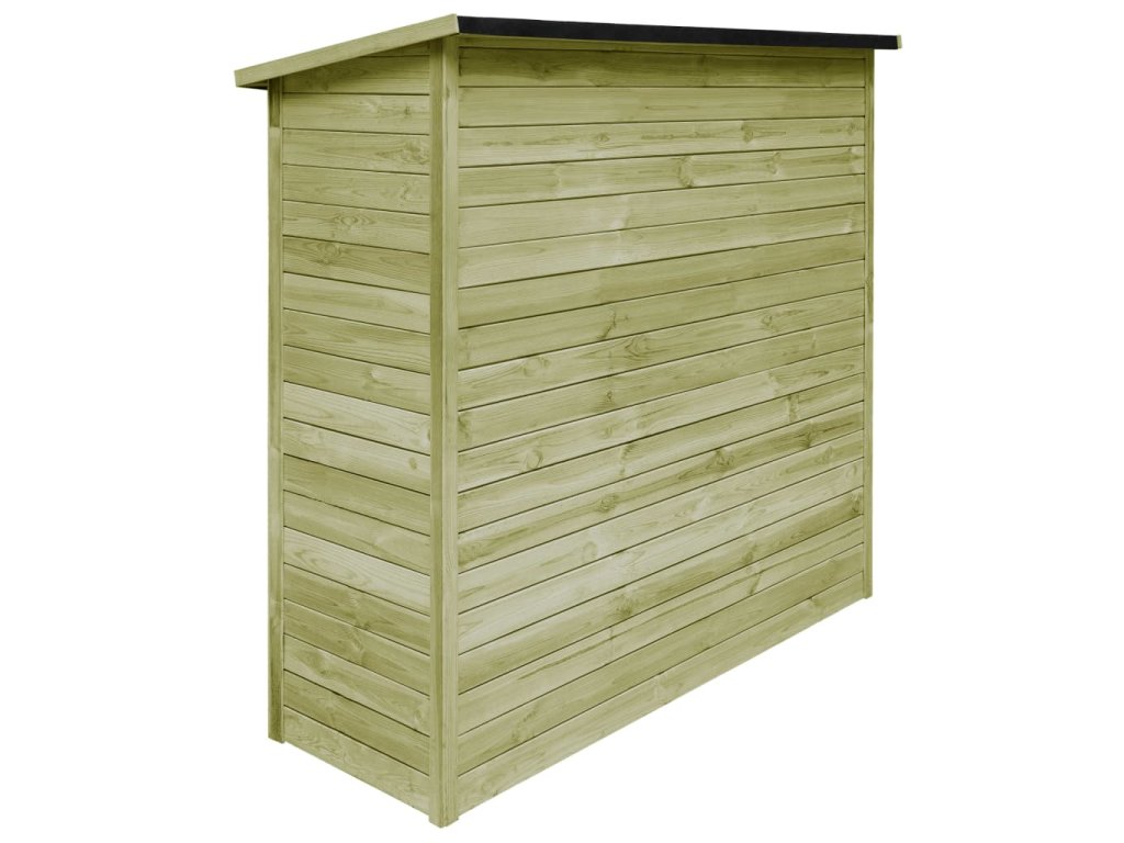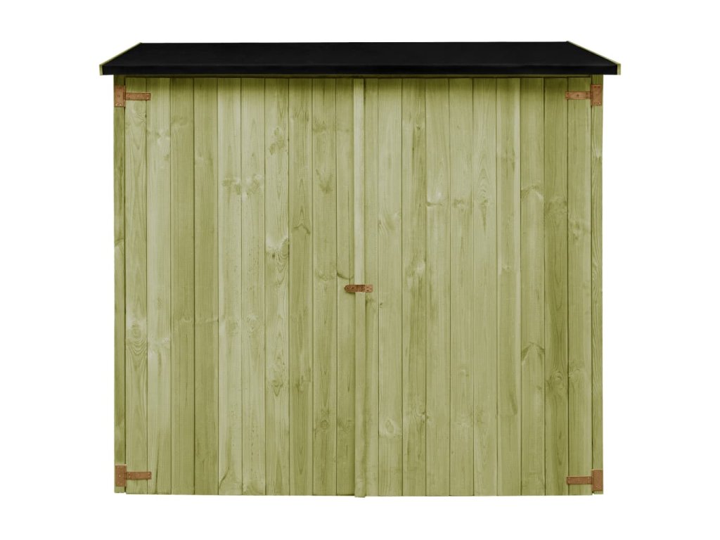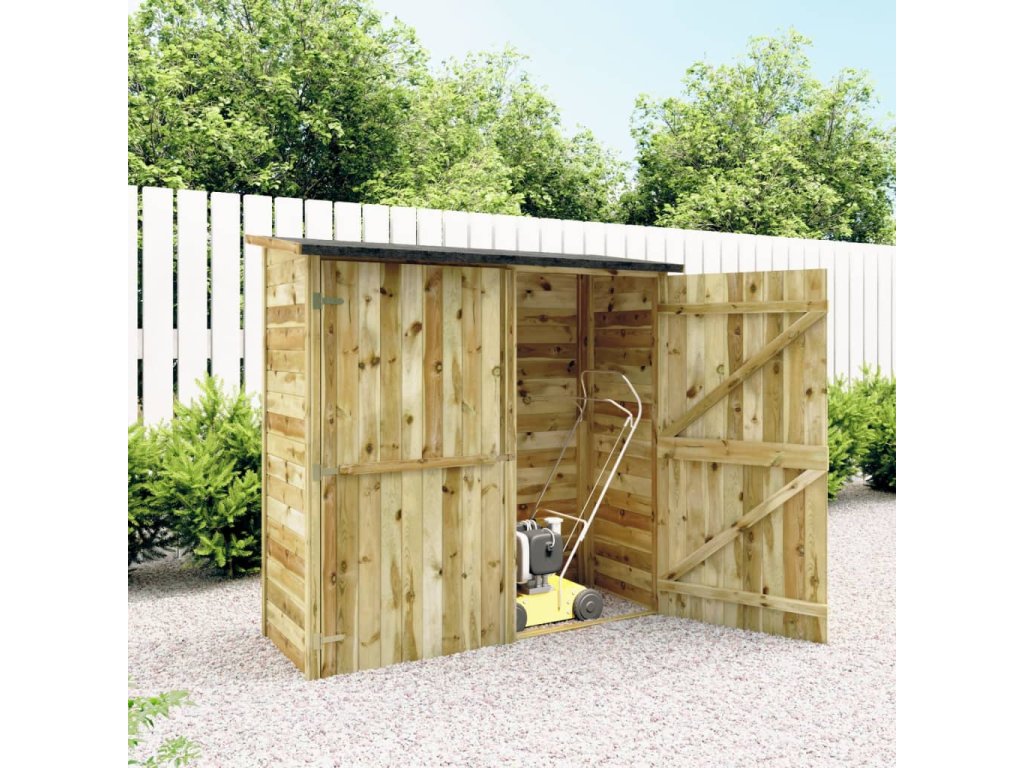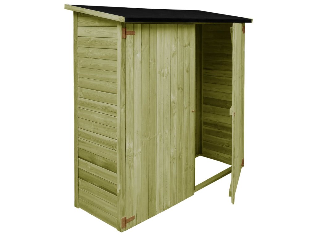 Tato kůlna je vyrobena z vysoce kvalitní impregnované borovice, a tudíž je pevná, hodně vydrží a nepodléhá povětrnostním vlivům. Dvoukřídlé dveře jsou navrženy tak, aby vám umožnily snadný přístup a lehce se zavírají. Tato skladovací kůlna se snadno sestavuje.