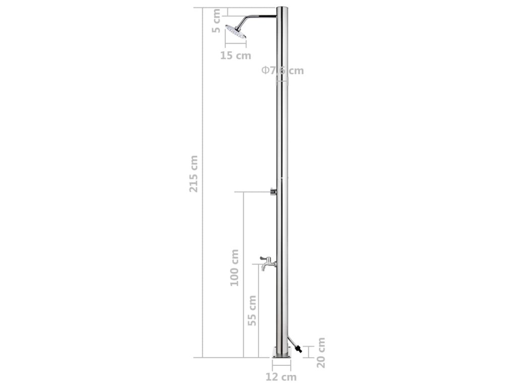 Venkovní sprcha je vyrobená z nerezové oceli, takže je odolná vůči povětrnostním vlivům. Sprchový systém s hlavovou sprchou a kohoutkem na mytí nohou vyhoví všem vašim potřebám při zahradničení, zalévání a rychlém sprchování.