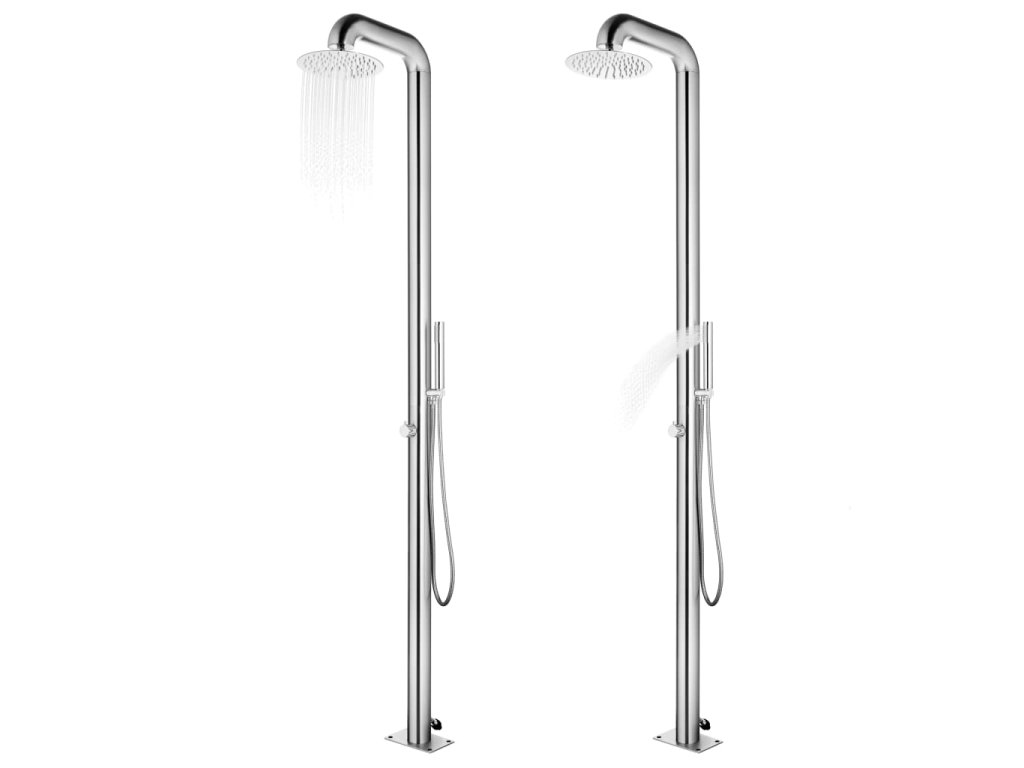 Tato zahradní sprcha je vyrobená z nerezové oceli, takže je klimaticky odolná. Sprchový systém má hlavovou sprchu a ruční sprchu, aby vám usnadnil práci na zahradě a umožnil zalévání a rychlé sprchování. Ruční sprcha má dvojitě zajištěnou pružnou 1,5m zahradní hadici. Je také vybavená mosazným držákem na ruční sprchu.