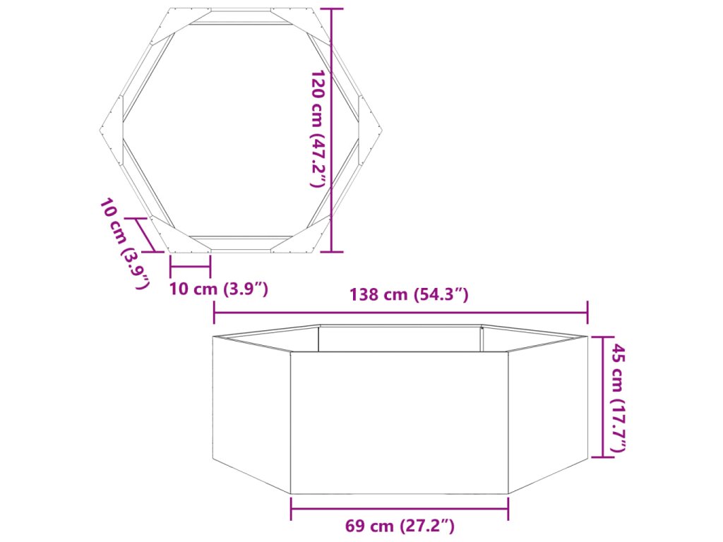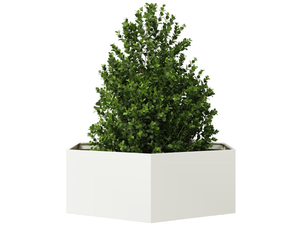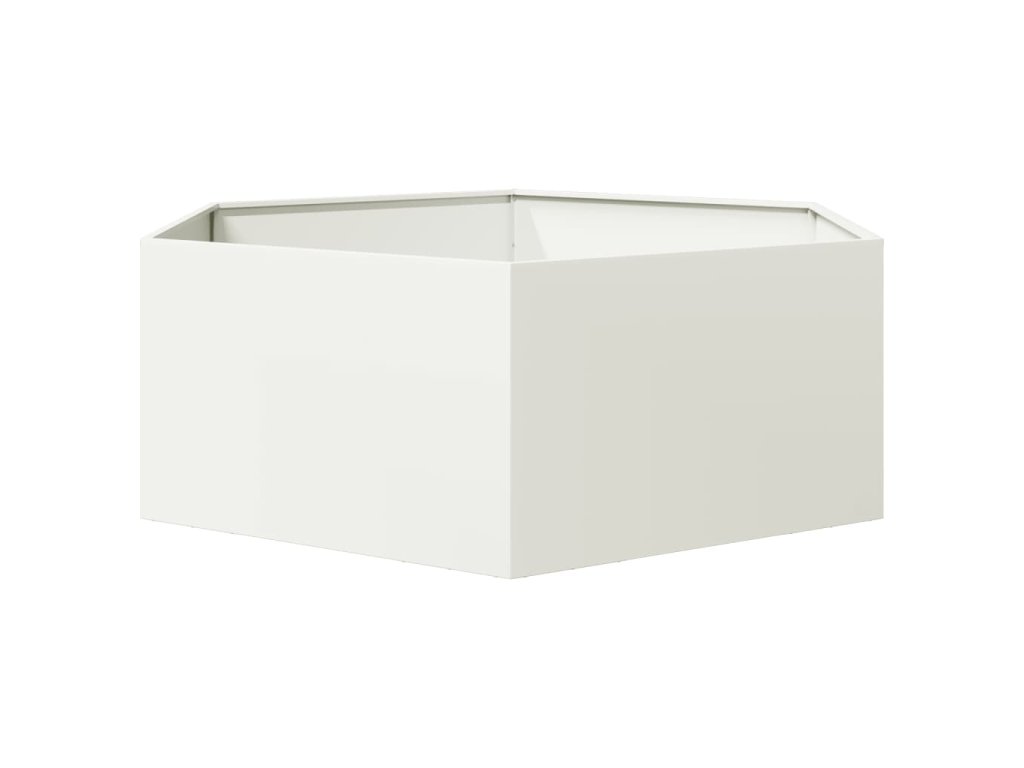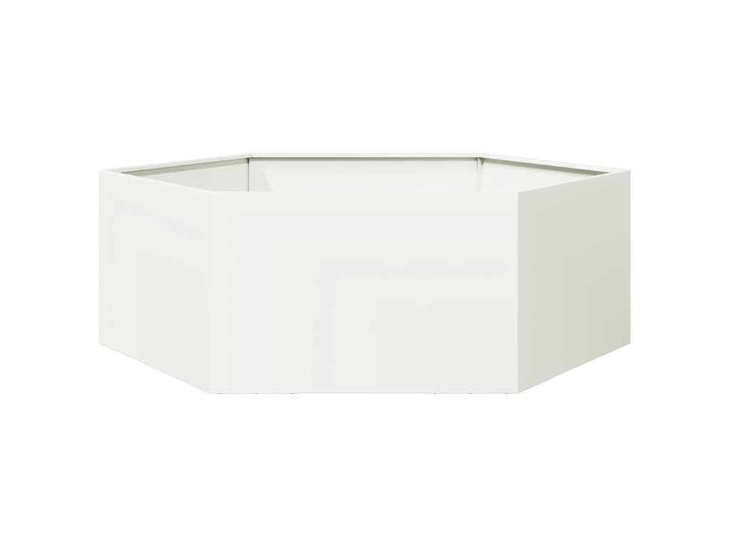vidaXL Zahradní truhlík bílý šestihranný 138 x 120 x 45 cm ocel