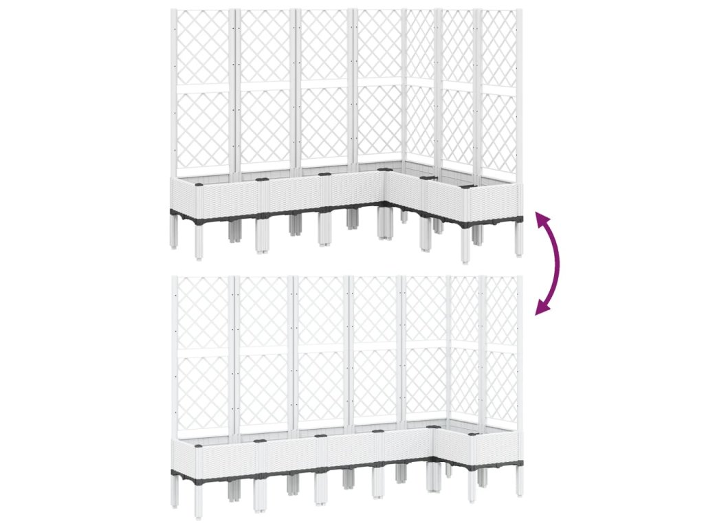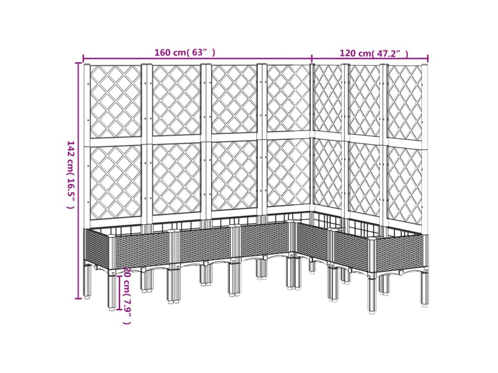 - Praktický design: Ideální dno pomáhá zadržovat vlhkost a umožňuje snadný odvod vody. Vestavěná treláž navíc nabízí oporu pro růst popínavých rostlin, jako jsou rajčata, hrášek nebo růže.