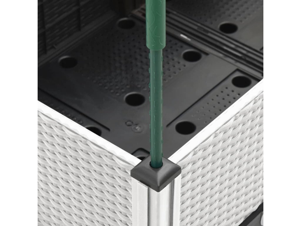 - Praktický design: Ideální dno pomáhá zadržovat vlhkost a umožňuje snadný odvod vody. Vestavěná treláž navíc nabízí oporu pro růst popínavých rostlin, jako jsou rajčata, hrášek nebo růže.