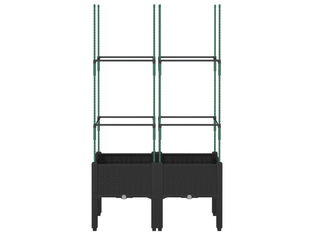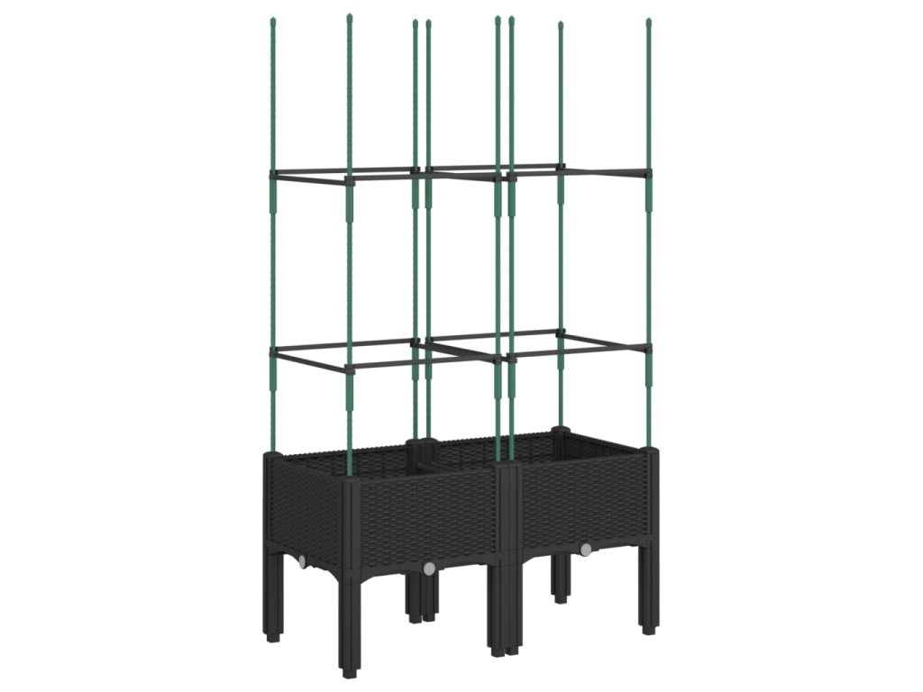 - Praktický design: Ideální dno pomáhá zadržovat vlhkost a umožňuje snadný odvod vody. Vestavěná treláž navíc nabízí oporu pro růst popínavých rostlin, jako jsou rajčata, hrášek nebo růže.
