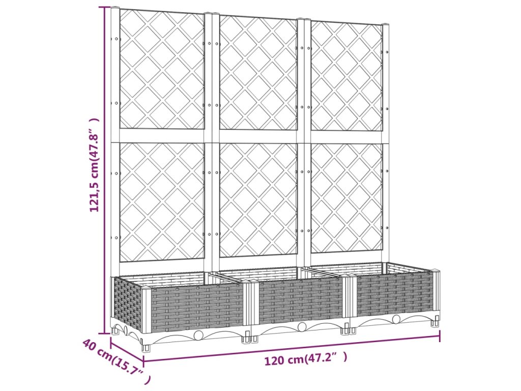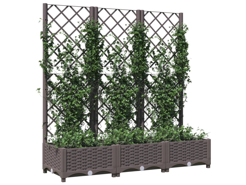 vidaXL Zahradní truhlík s treláží hnědý 120 x 40 x 121,5 cm PP