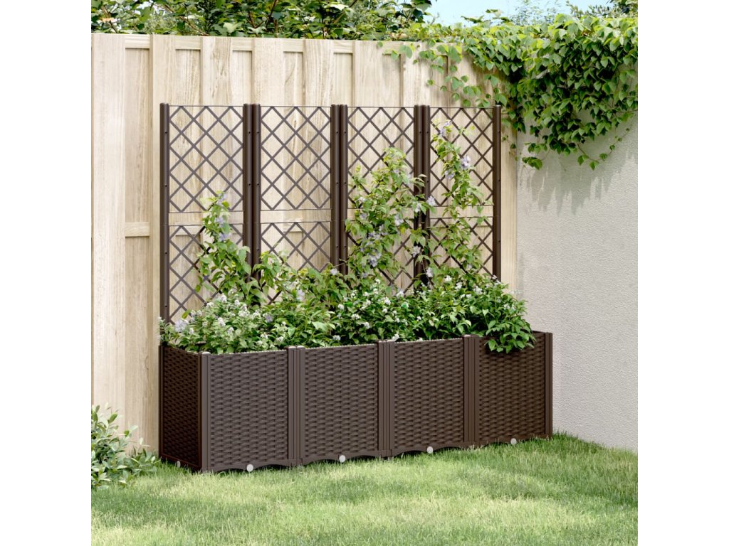 vidaXL Zahradní truhlík s treláží hnědý 160 x 40 x 140 cm PP