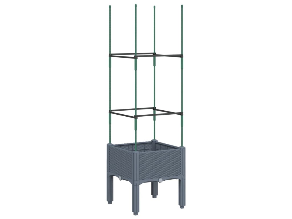 vidaXL Zahradní truhlík s treláží šedý 40 x 40 x 142,5 cm PP
