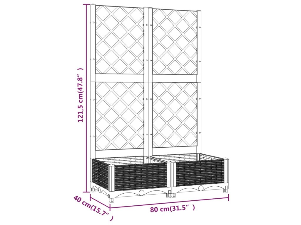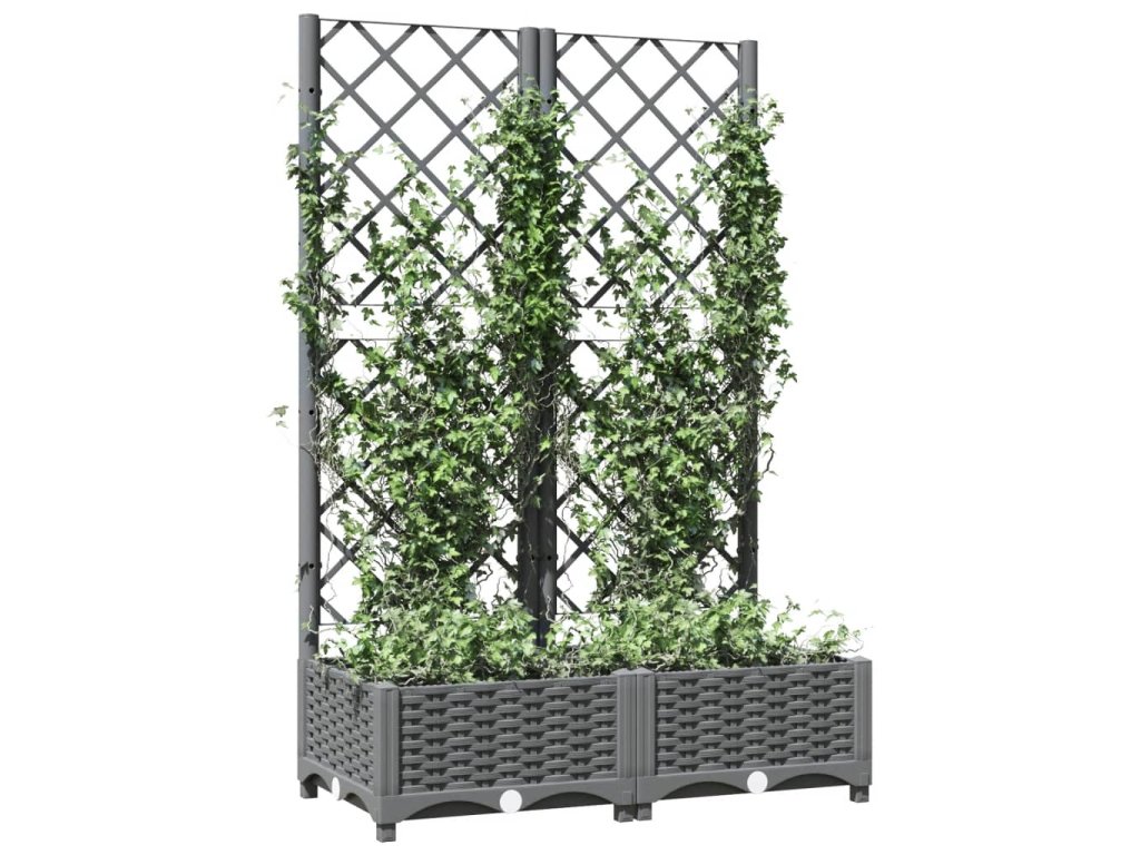 vidaXL Zahradní truhlík s treláží světle šedý 80 x 40 x 121,5 cm PP