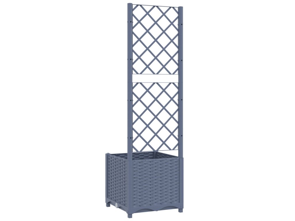 vidaXL Zahradní truhlík s treláží tmavě šedý 40 x 40 x 136 cm PP