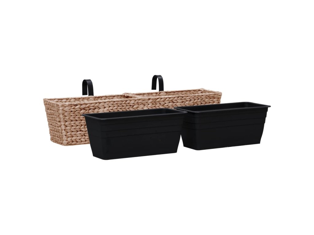 Tato sada hezkých truhlíků obsahuje 2 truhlíky zhotovené z vodního hyacintu a 4 vyjímatelné květináče.