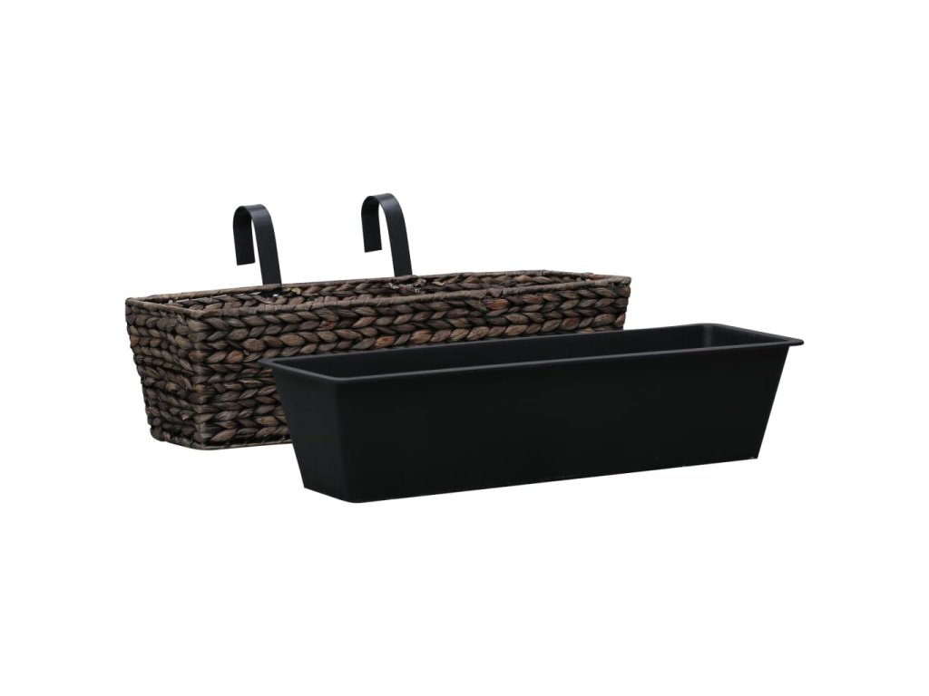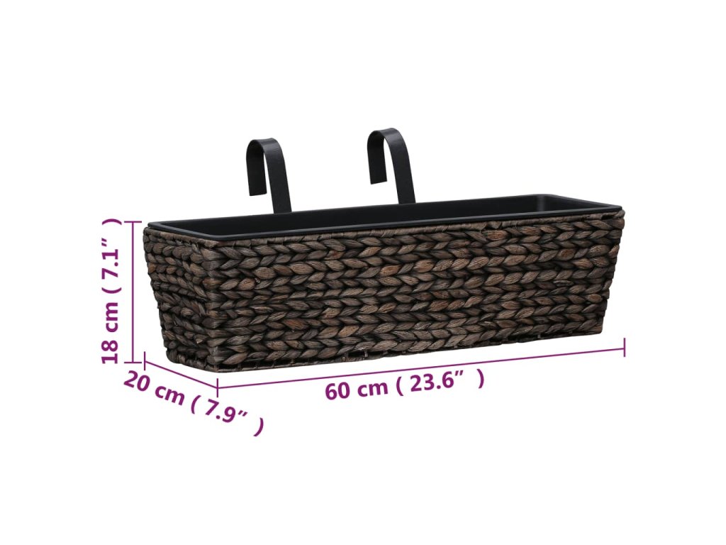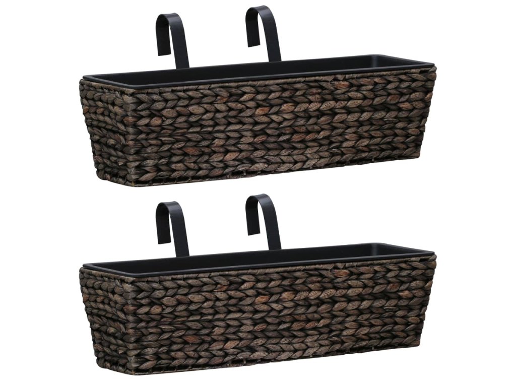 Tato sada hezkých truhlíků obsahuje 2 truhlíky zhotovené z vodního hyacintu a 2 vyjímatelné květináče.