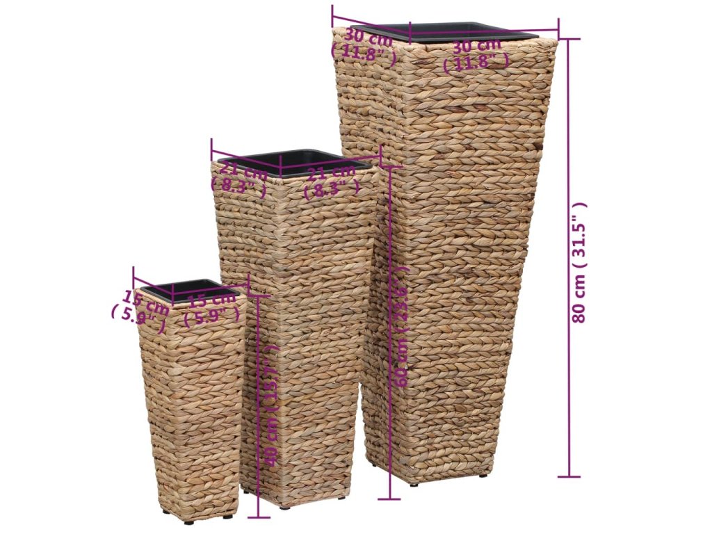 Zasaďte si své květiny či rostliny do naší sady rustikálních vyvýšených záhonů z vodního hyacintu a vystavte je na odiv! Každý ze 3 truhlíků má jinou velikost, takže můžete dát průchod své tvořivosti a uspořádat je dle svého vkusu.