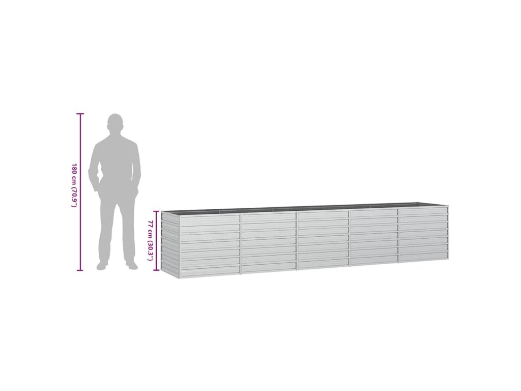 vidaXL Zahradní vyvýšený záhon 400x80x77 cm pozinkovaná ocel stříbrný