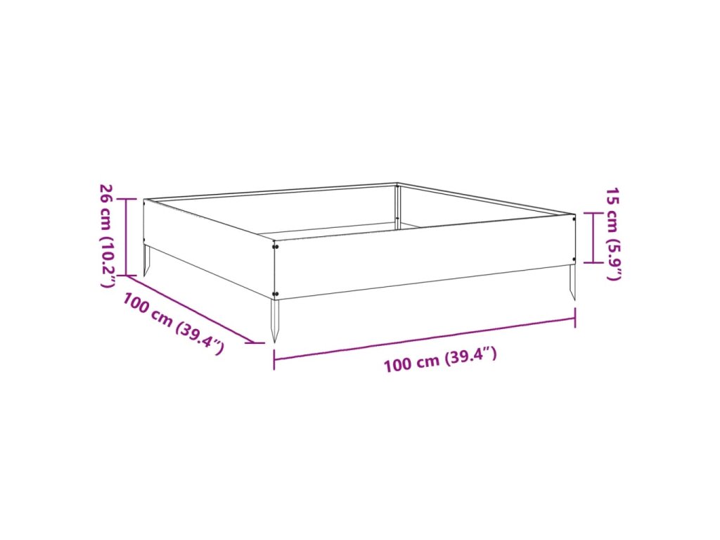 - Robustní a odolný materiál: Vyvýšený záhon je vyroben z oceli, skvěle proto odolává povětrnostním vlivům a je vhodný pro dlouhodobé používání venku.