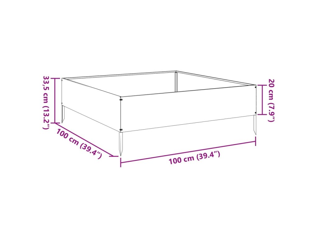 - Robustní a odolný materiál: Vyvýšený záhon je vyroben z oceli, skvěle proto odolává povětrnostním vlivům a je vhodný pro dlouhodobé používání venku.