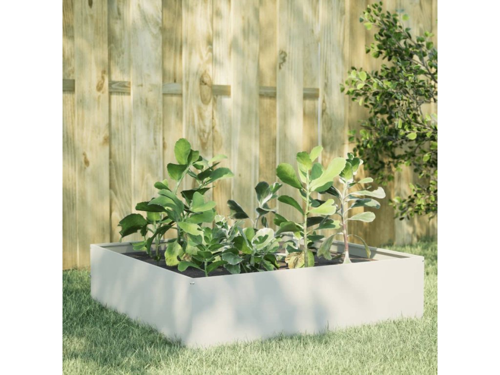 vidaXL Zahradní vyvýšený záhon bílý 100 x 100 x 25 cm ocel