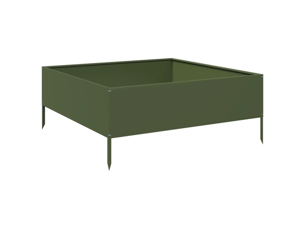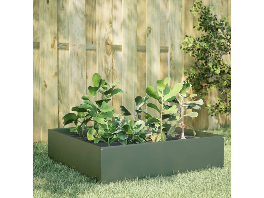 vidaXL Zahradní vyvýšený záhon olivově zelený 100 x 100 x 25 cm ocel