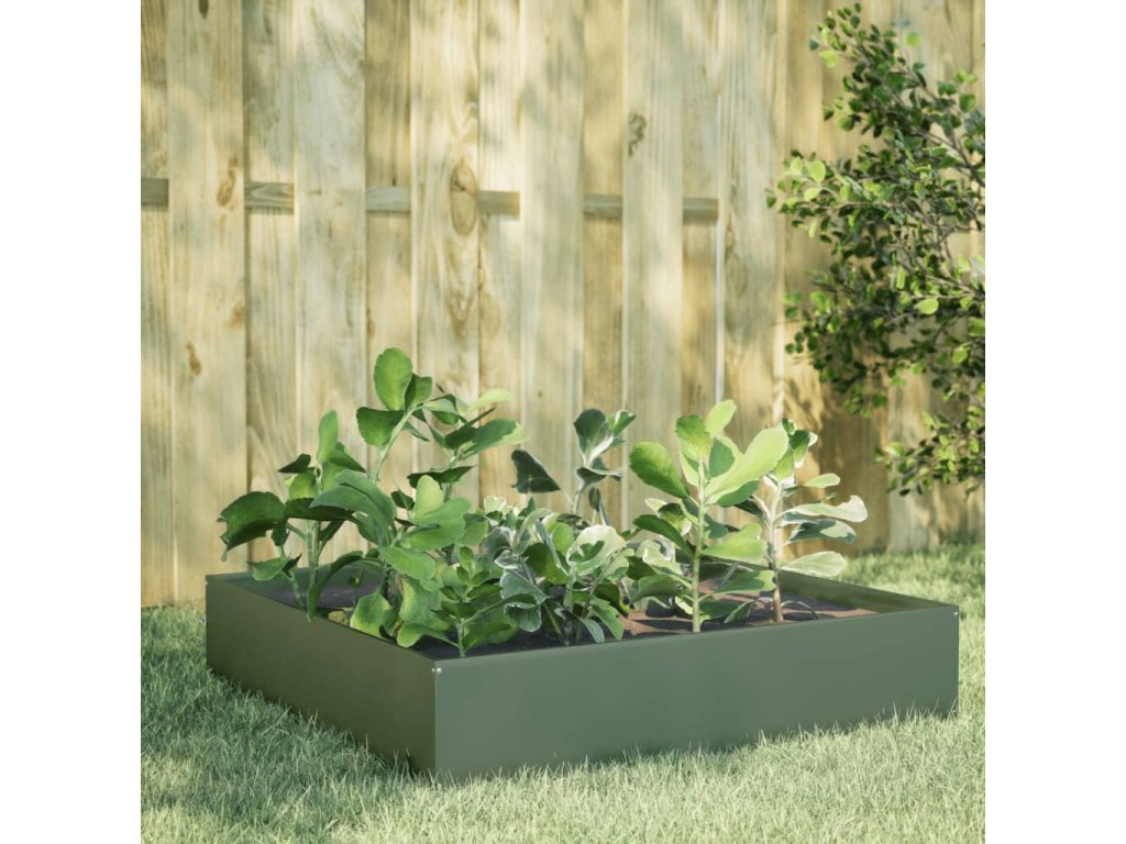 vidaXL Zahradní vyvýšený záhon olivově zelený 100 x 100 x 33,5 cm ocel