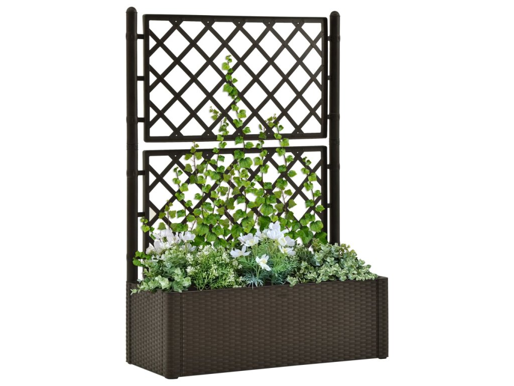 vidaXL Zahradní vyvýšený záhon s treláží a samozavlažováním mokka