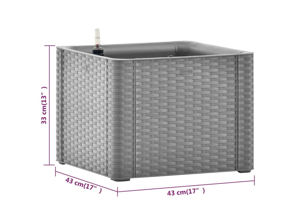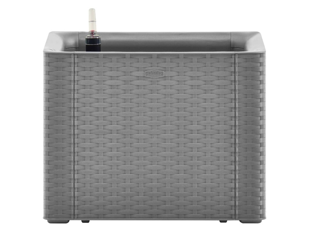 Tento zahradní truhlík je vyrobený z robustního polypropylenu (PP), který je odolný vůči povětrnostním podmínkám, mrazu a UV záření a je vhodný pro vnitřní i venkovní použití. Design připomíná strukturu pravého ratanu. Do tohoto truhlíku se vejde velké množství zelených rostlin a květin. Truhlík je navíc vybavený samozavlažovacím systémem a indikátorem hladiny, který zabraňuje nadměrnému zalévání.