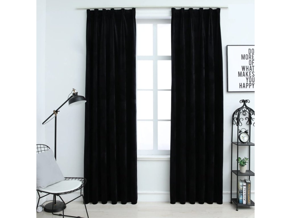 vidaXL Zatemňovací závěsy s háčky 2 ks sametové černé 140 x 245 cm