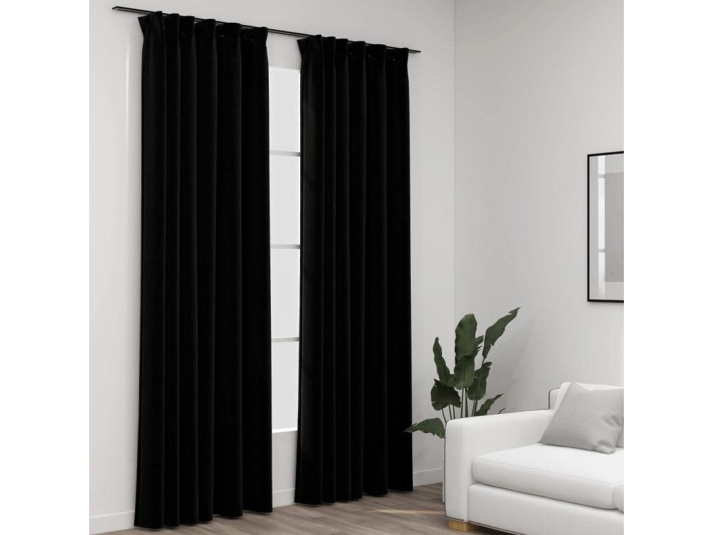 vidaXL Zatemňovací závěsy s háčky vzhled lnu 2 ks černé 140 x 225 cm