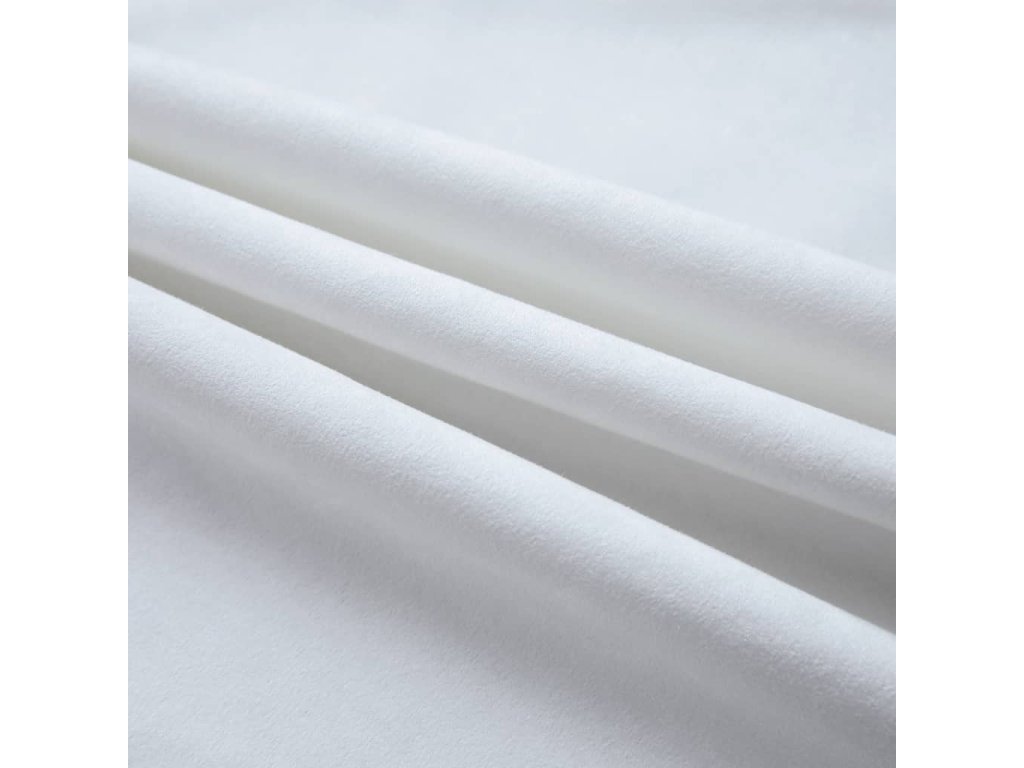 Závěsy mají jednoduchý a přitom nadčasový design. Jelikož jsou opatřené kovovými kroužky, lze je snadno pověsit na všechny typy záclonových tyčí. Navíc jsou vyrobené z prémiového polyesteru, který na dotek působí jako semiš, a můžete je prát v pračce.