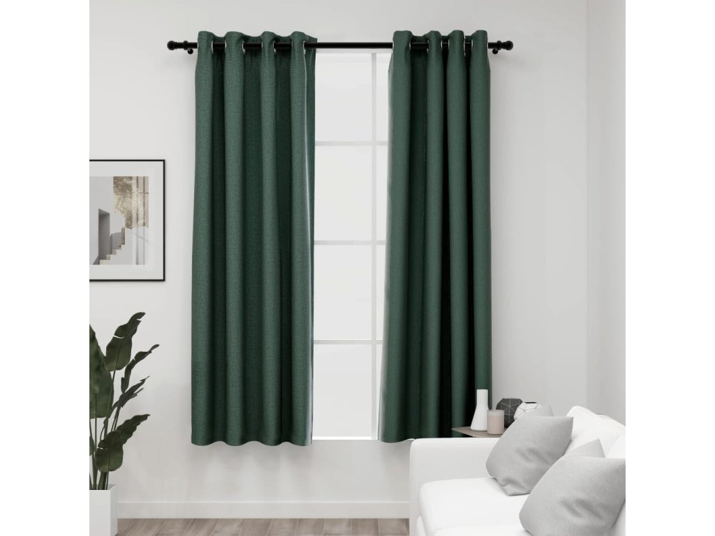 vidaXL Zatemňovací závěsy s kroužky vzhled lnu 2 ks zelené 140x175 cm