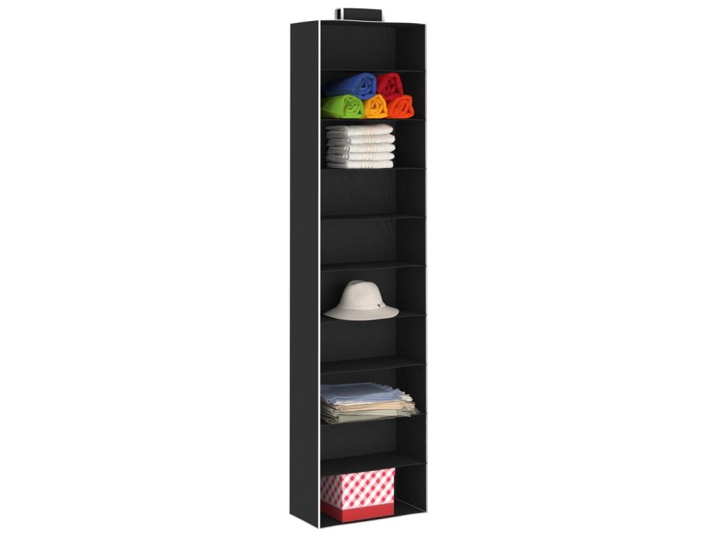 Těchto 10 otevřených přihrádek v každém závěsném organizéru dává pohodlný přehled o tom, co je kde uložené, a nabízí dostatek místa pro oblečení a doplňky, jako jsou svetry, ručníky, pyžama, oblečení, plavek, klobouků atd. Tento organizér je navíc skládací. Je extrémně kompaktní a snadno se přepravuje z místnosti do místnosti.